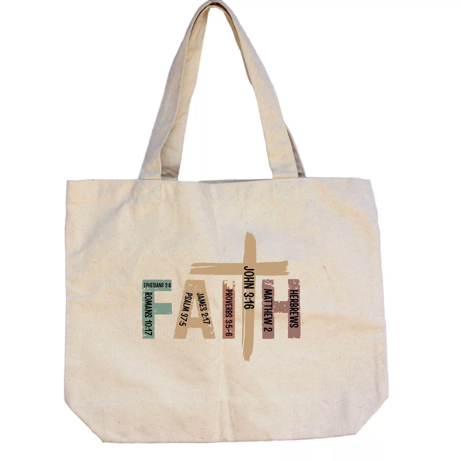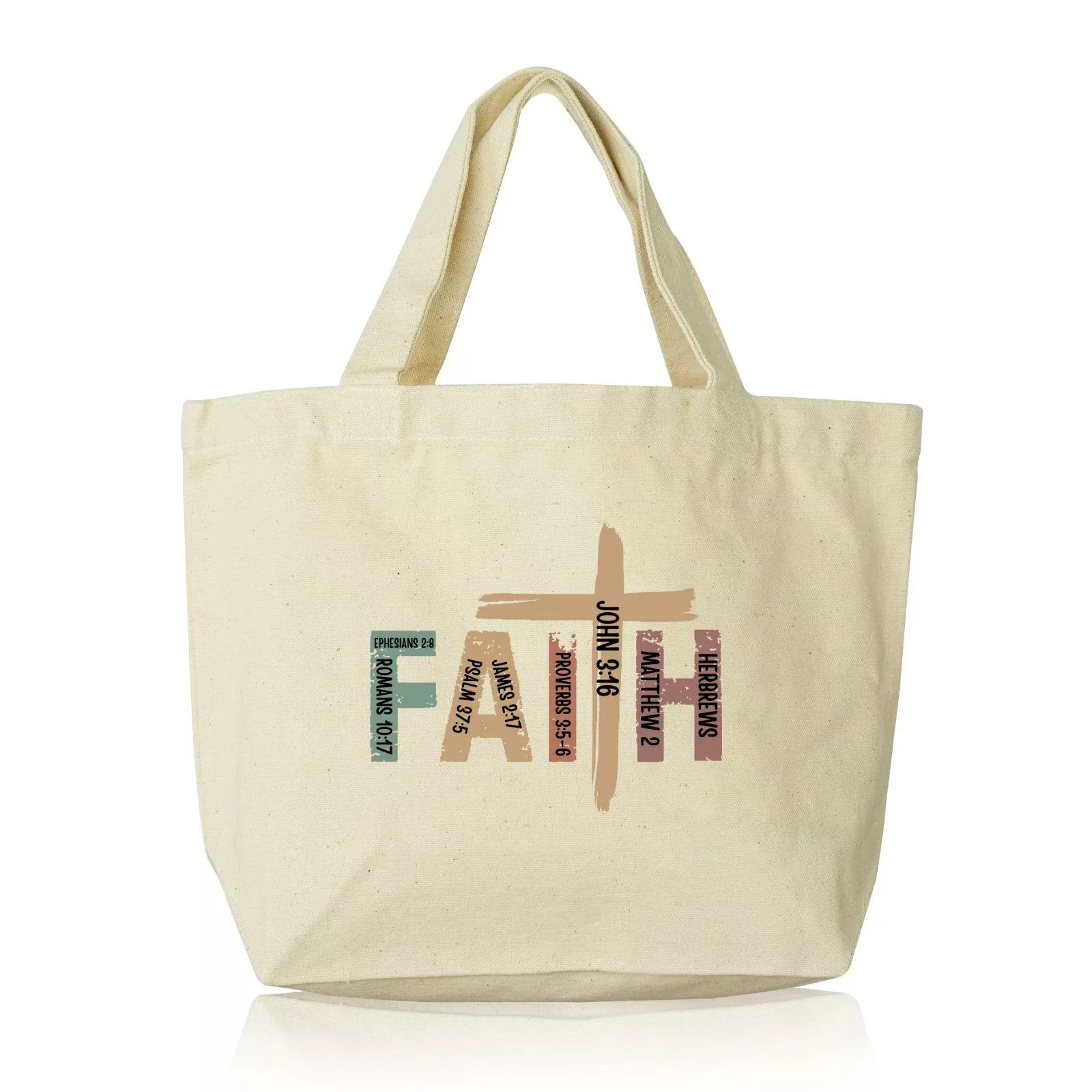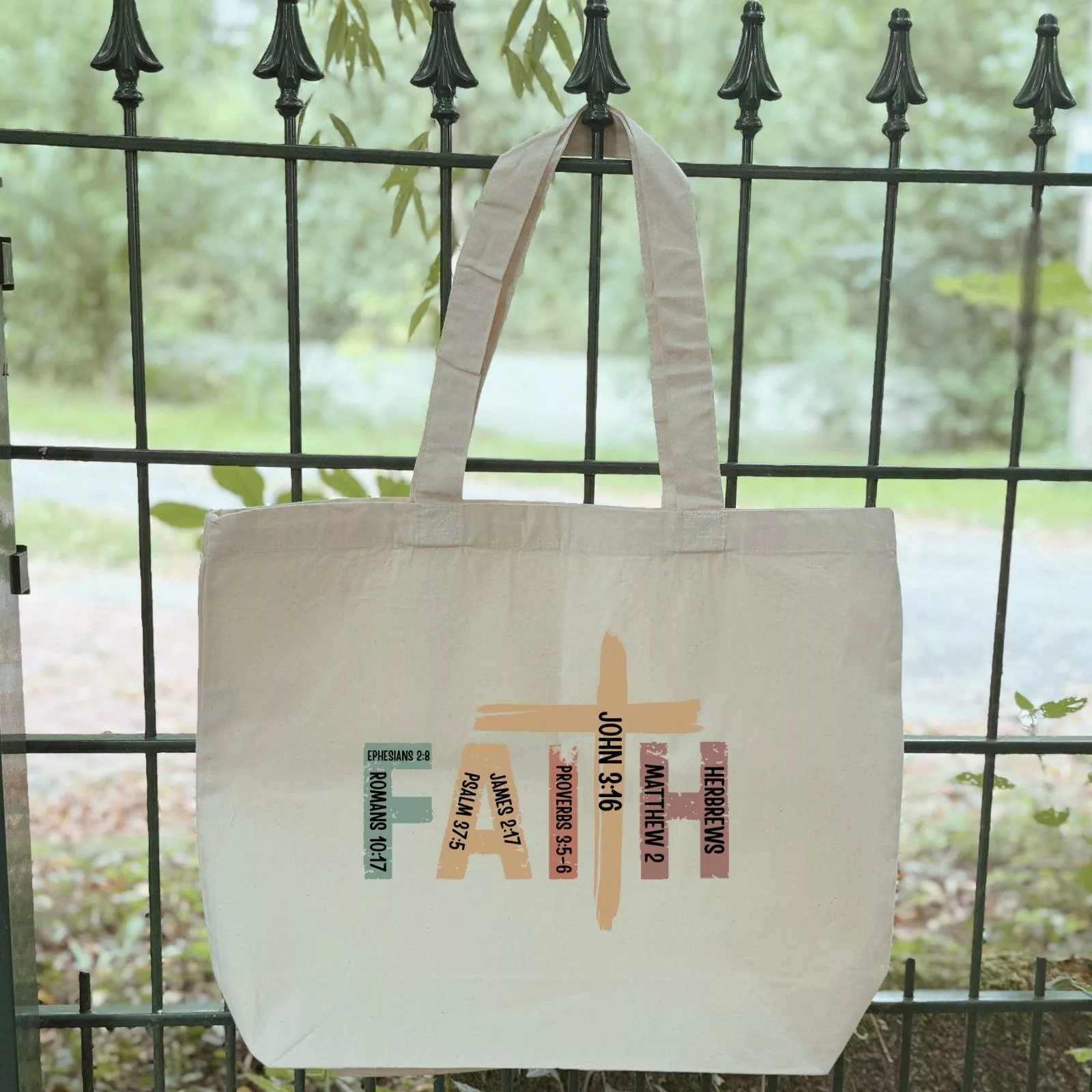 Bedruckte Baumwolltasche I christlicher Vers I Einkaufstasche I FAITH I Kreuz